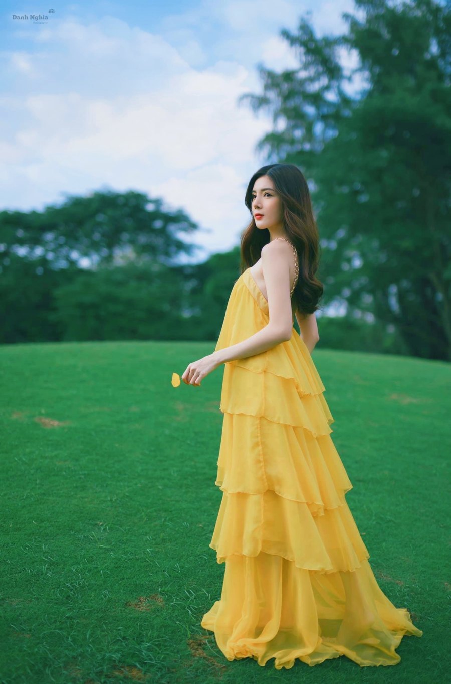 Mua ngay: Đầm Maxi Hở Lưng Vàng Cổ Yếm Tầng Bèo DM331