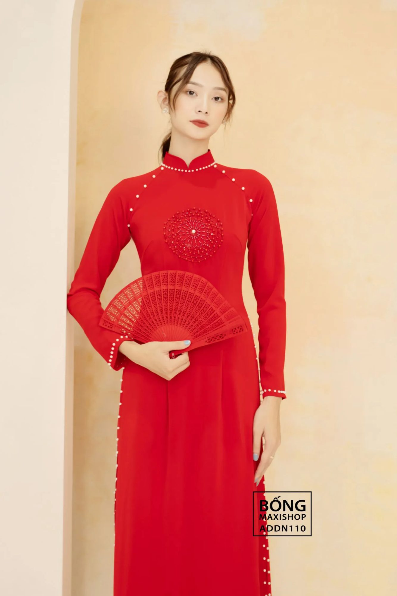 Mua ngay: Áo dài cô dâu lụa 2 da đỏ kết tròn ADDN110