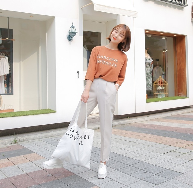 Là cô nàng cá tính, hãy sử dụng bộ đôi áo thun ôm và quần tây xuông, trang điểm cá tính bạn sẽ hot hơn bao giờ hết.