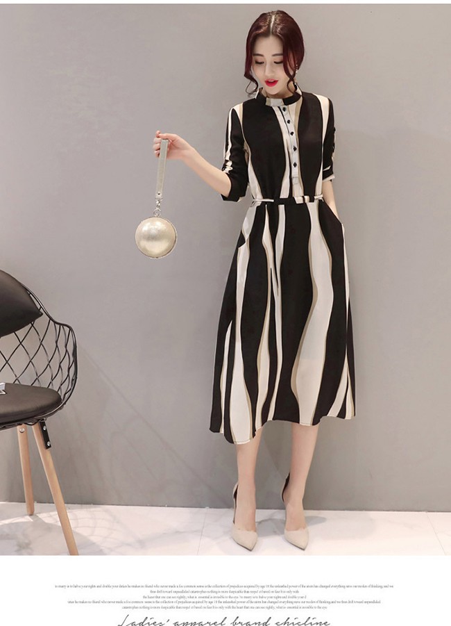 Họa tiết kẻ sọc luôn mang lại sự trẻ trung, năng động.Ưu điểm lớn , khi bạn sở hữu vóc dáng thanh mảnh,diện chiếc váy có đường kẻ ngang sẽ giúp cơ thể trông đầy đặn hơn.