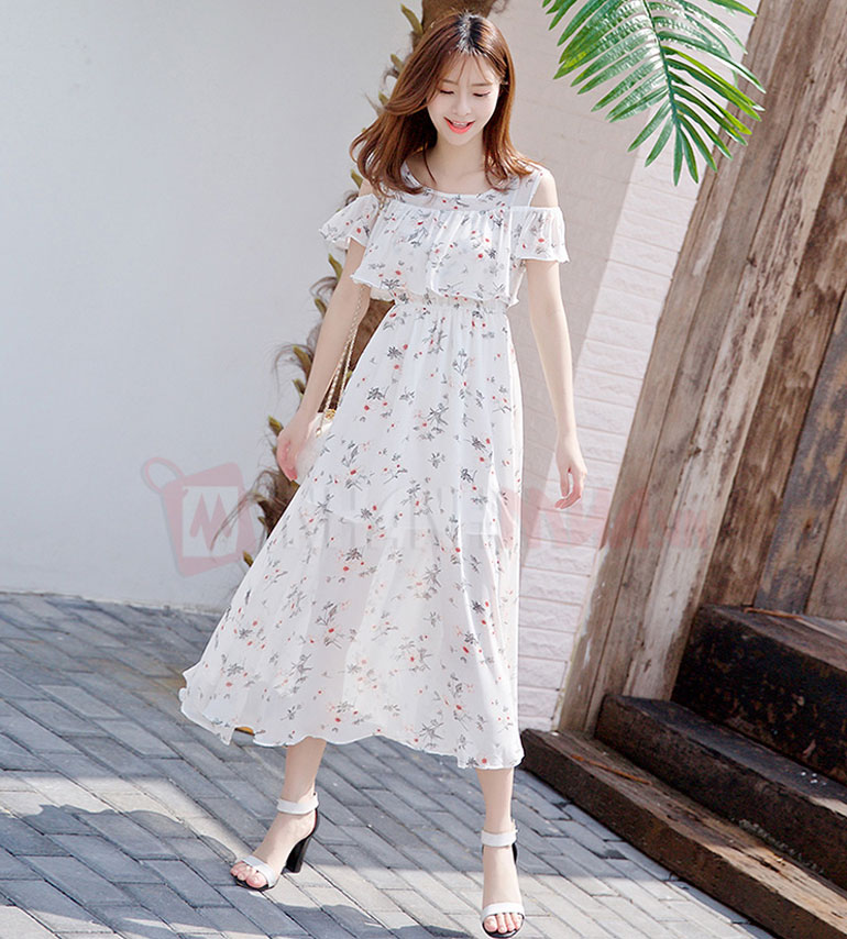 Trẻ trung với họa tiết tươi trẻ màu sắc tươi sáng như trắng , xanh dương nhạt , hồng, vàng .Nhiều kiểu cách khác nhau ở đầm maxi cổ điển , độ dài váy vừa phải mang đến sự năng động và hack tuổi hiệu quả đặc biệt là các bạn u30 .