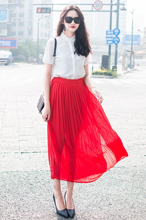 Chiếc chân váy xếp ly tôn lên chiều cao khiêm tốn của các chị em . Ngoài ra , bạn sở hữu chiều cao lý tưởng bạn có thể chọn chân váy dài tới bắp cá chân hiện đại hơn . Bạn cần lưu ý về độ xếp ly to nhỏ để vóc dáng được cân bằng .
