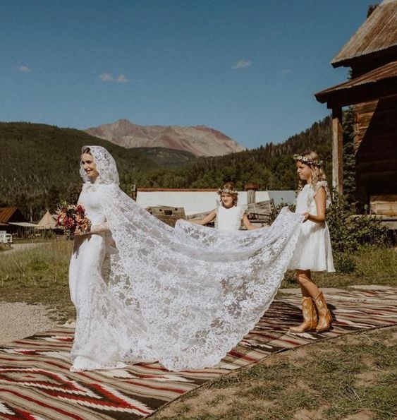 Nữ diễn viên Lily Collins xinh đẹp vừa qua đã có một đám cưới trong mơ với mẫu váy cô dâu đơn giản được thiết kế bởi nhà mốt Ralph Lauren. Chiếc váy cô dâu hiện đại pha lẫn chút cổ điển được làm từ vải ren, lấy cảm hứng từ cô bé choàng khăn đỏ. Nhưng thay vì màu đỏ chiếc váy cưới đơn giản của Lily được sử dụng thuần màu trắng được làm nổi bật bởi áo choàng có mũ khiến cô trông như một nàng công chúa bước ra từ chuyện cổ tích.