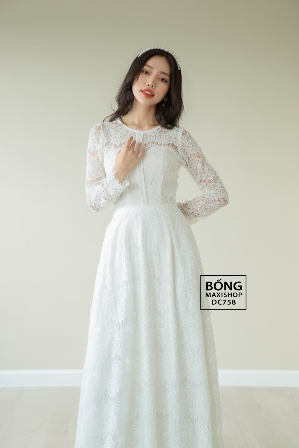 Mua ngay: Váy cưới Full ren trắng tay dài DC758
