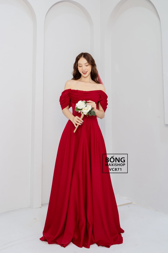 Váy cưới phi nhật đỏ trễ vai 794 DC538D
