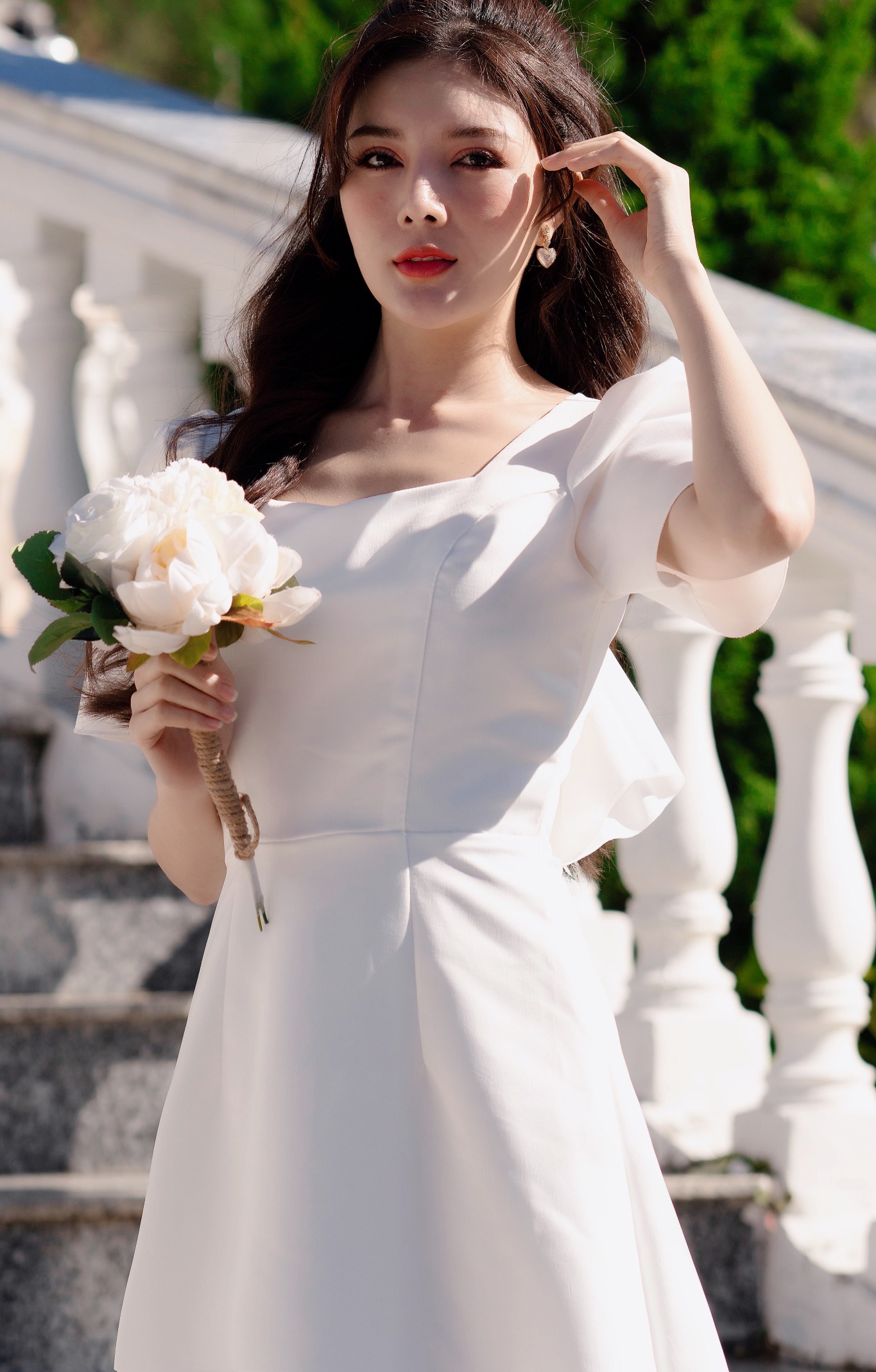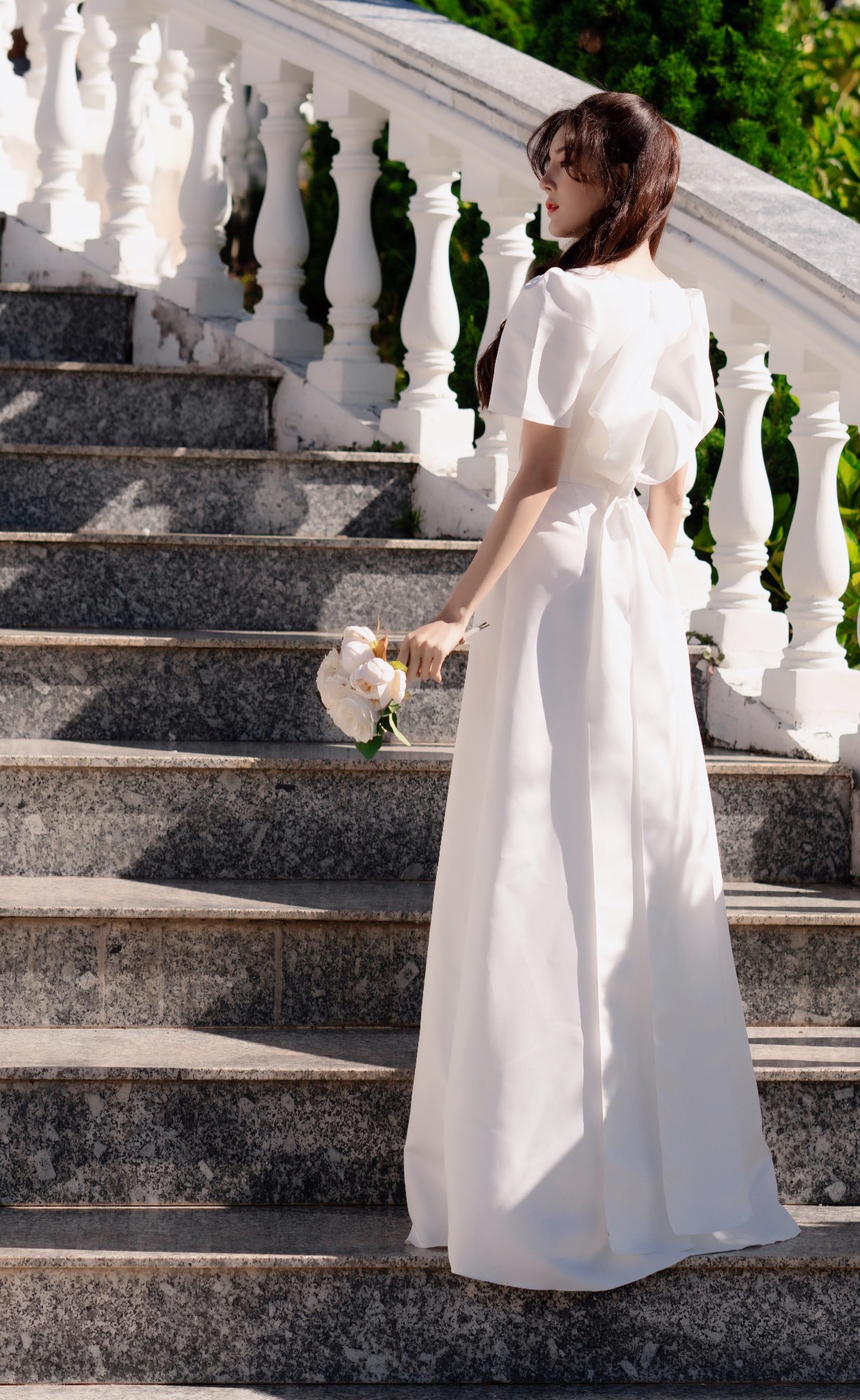 Váy Cưới PN Suông Tay Con Nơ Lưng Đuôi DC545