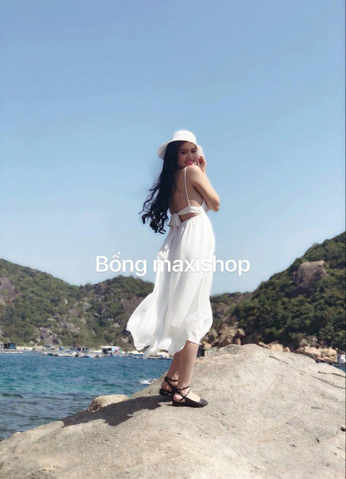 - Lựa chọn váy maxi dáng ngắn sẽ mang lại cảm giác chân dài ra cùng với thiết kế liền thân giúp eo thon hơn nữa.