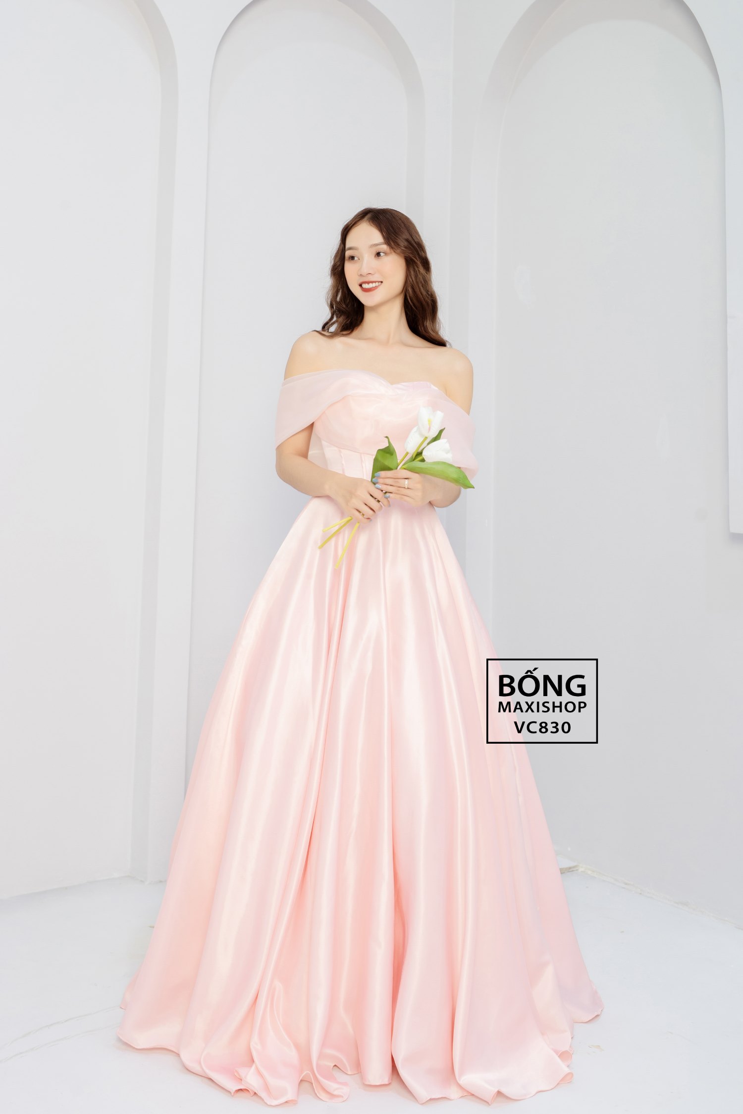 Mua ngay: Váy cưới phi nhật bèo ngực kiếng xoắn dựng gọng hồng cam sữa VC830H