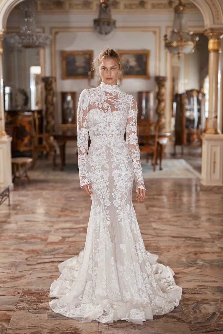 Meghan Markle là người dẫn đầu cho những mẫu váy cưới hot 2022 cổ cao với chiếc váy cưới nữ tính Stella McCartney năm 2018 của cô. Không ngạc nhiên gì khi hình bóng của chiếc váy cưới cổ cao này vẫn xuất hiện trên các mẫu váy cưới hot 2022 trên sàn diễn thời trang váy cưới mùa thu. Những đường viền cổ ngắn hay cao của mẫu váy cưới hot 2022 này, tạo thêm nét cổ điển cho bất kỳ chiếc váy nào, nhưng cũng có thể tăng thêm độ che phủ cho những ai muốn có vẻ ngoài khiêm tốn, kín đáo hơn.