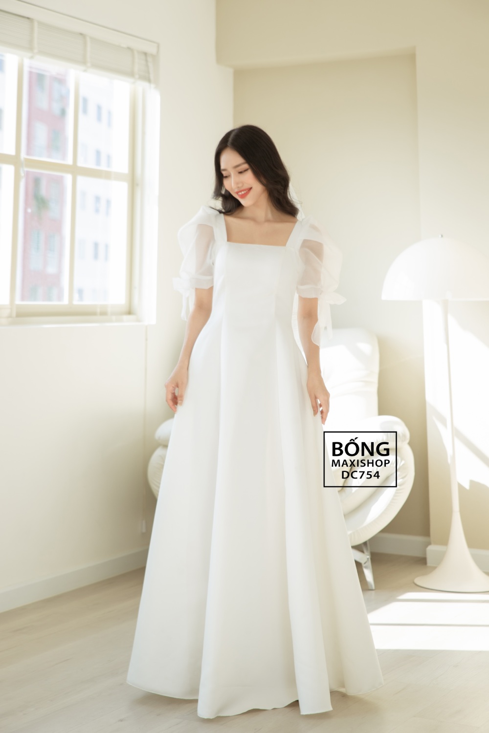 Mẫu váy cưới hot 222 DC754 là sự lựa chọn hoàn hảo cho những cô nàng yêu thích vẻ đẹp cổ điển và sang trọng. Đó là trang phục mang ấn tượng thanh lịch, trang nhã, sử dụng chất liệu vải phi nhật được cắt may cẩn thận, mềm mại, nhẹ và bền. Với phần tay áo phồng, cổ vuông và chân váy hơi loe, chiếc váy này mang đến cho cô dâu vẻ ngoài thanh lịch và tinh tế với kiểu dáng đơn giản và tinh tế, phù hợp với nhiều loại hình cơ thể.
